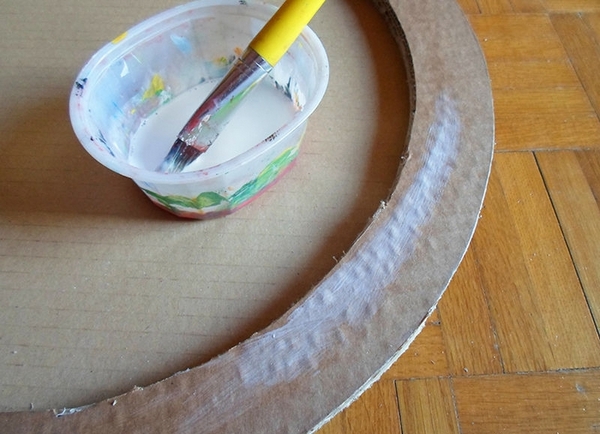 Karton urang motong dina bentuk bunderan, supaya kahiji jeung bantuan ti kompas a ditandaan eta kieu: